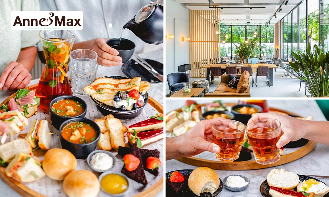 Beleef een gezellige middag tijdens een high tea bij Anne&Max aan de Wilhelminastraat in Breda: geniet van diverse sandwiches, zoetigheden, onbeperkt thee en meer