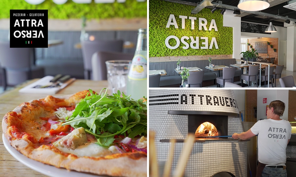 Attraverso is gevestigd in een voormalig bankgebouw, tegenover eetcafé De Groes. De naam Attraverso geeft dit eigenlijk al aan: een pizzeria en gelateria 'aan de overkant'. Bij Attraverso wordt alleen Italiaanse topkwaliteit op tafel getoverd!