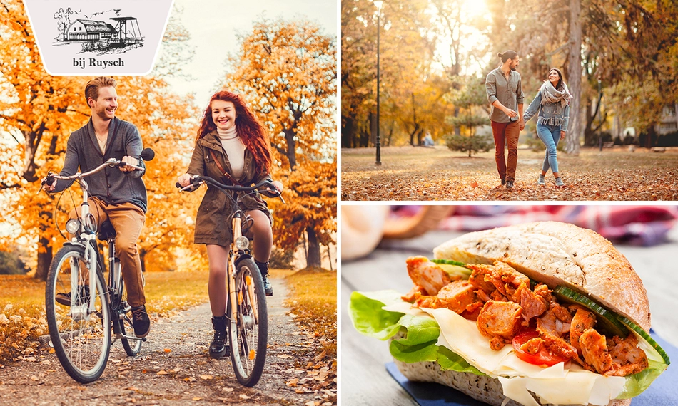 Ga voor het fiets- of wandelarrangement bij eetcafé bij Ruysch! Bij aanvang staat er een heerlijk stuk huisgemaakt gebak voor je klaar met een kopje koffie of thee. Vervolgens kies je uit diverse fiets- en wandelroutes. Laat je onderweg verrassen door de schitterende kleuren van de natuur. Wanneer je terugkomt, laad je lekker op met een verrukkelijk 12 uurtje. Enjoy!