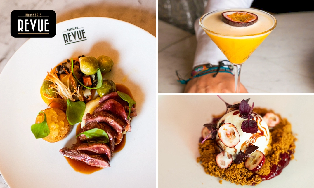 Smul van een heerlijk 3-gangen keuzediner of 2 cocktails naar keuze en 3 mini-burgers bij Brasserie Revue in hartje Maastricht: gezellig een avondje genieten met je favoriete gezelschap