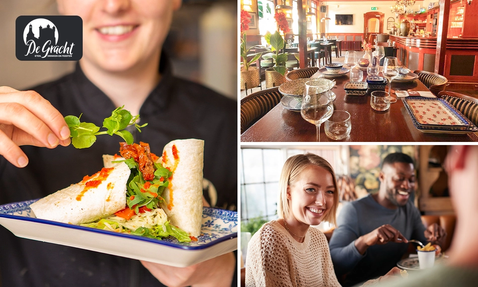 Geniet van een heerlijke 2-gangen keuzelunch bij De Gracht Eten, Drinken & Feesten: bij het hoofdgerecht keuze uit broodjes, tosti's, uitsmijters, omeletten en wraps