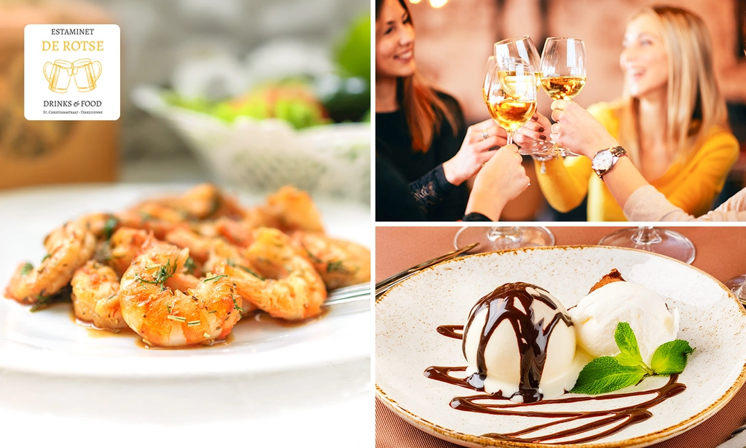 Heb jij zin in een zalige lunch of diner op een prachtige locatie? Dan ben je bij De Rotse aan het juiste adres. Je geniet hier van een 3-gangen keuzelunch of -diner . Proef bijvoorbeeld de kaaskroketten, stoverij van varkenswangen en sluit af met appeltaart. Er is voor ieder wat wils! Neem je favoriete gezelschap mee en beleef een onvergetelijke dag!