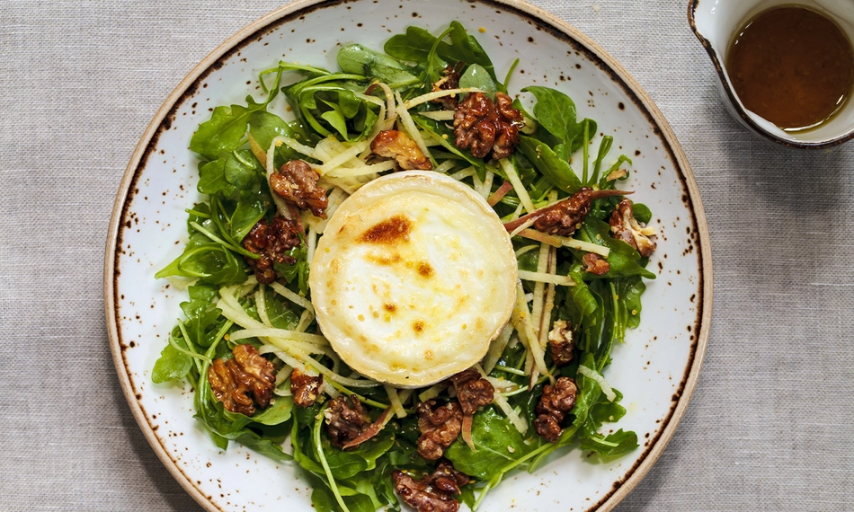 Alle salades worden geserveerd met brood, boter en vinaigrette