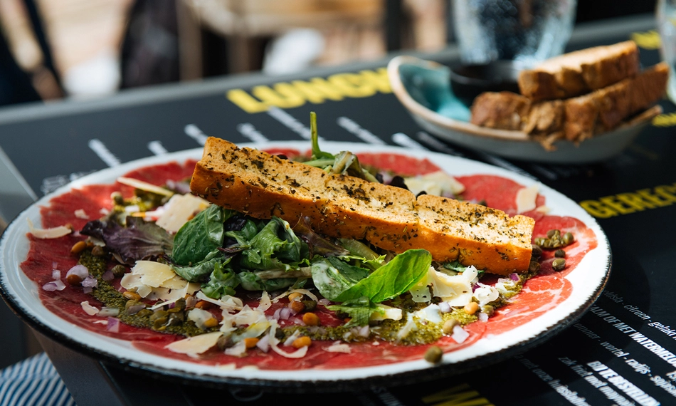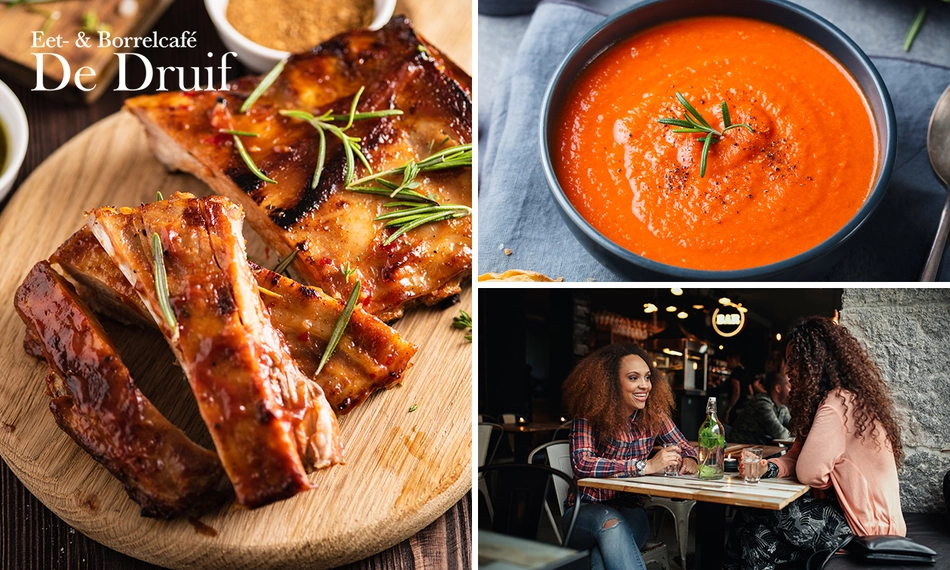 Heerlijk 2-gangen keuzediner bij Eet- & Borrelcafé De Druif in hartje Den Bosch: geniet bijvoorbeeld van verrukkelijke carpaccio en spareribs