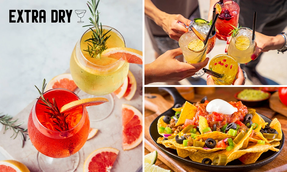 Genieße knusprige Nachos mit geschmolzenem Käse, serviert mit zwei hausgemachten Dips bei Extra Dry Bonn: Inklusive zwei köstlichen Cocktails nach Wahl