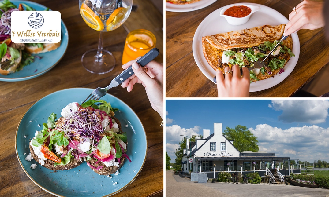 Bij ´t Wellse Veerhuis Pannenkoeken & meer ben je van harte welkom om in maritieme sferen te komen genieten van een smakelijke 2-gangen keuzelunch! Terwijl je wegdroomt bij het prachtige uitzicht over de Maas, smul je van een heerlijk voor- en hoofdgerecht of een hoofd- en nagerecht. Ga bijvoorbeeld voor een van de overheerlijke pannenkoeken en sluit je maaltijd af met een coupe 't Veer. Dat wordt genieten!