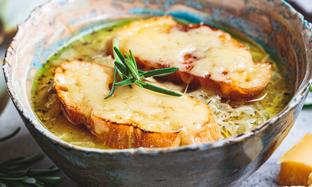 Geniet van een heerlijke 2- of 3-gangen keuzelunch bij Het Hart van Warder: kies bijvoorbeeld voor een smaakvolle uiensoep en een broodje carpaccio
