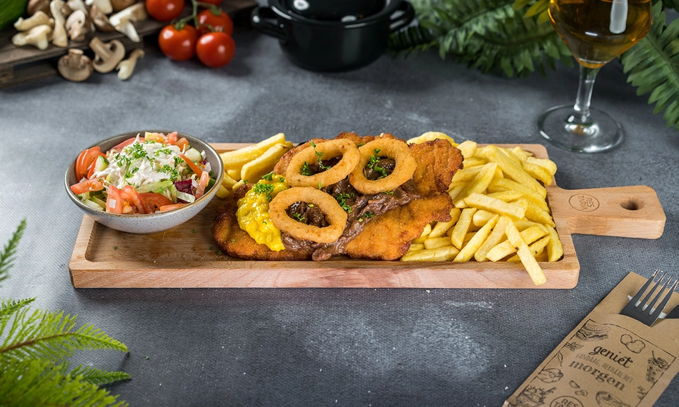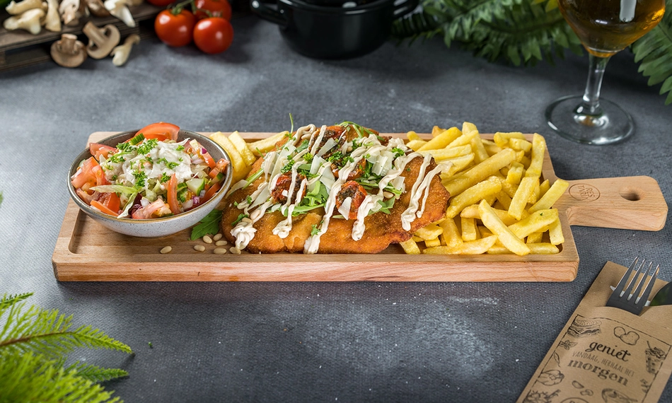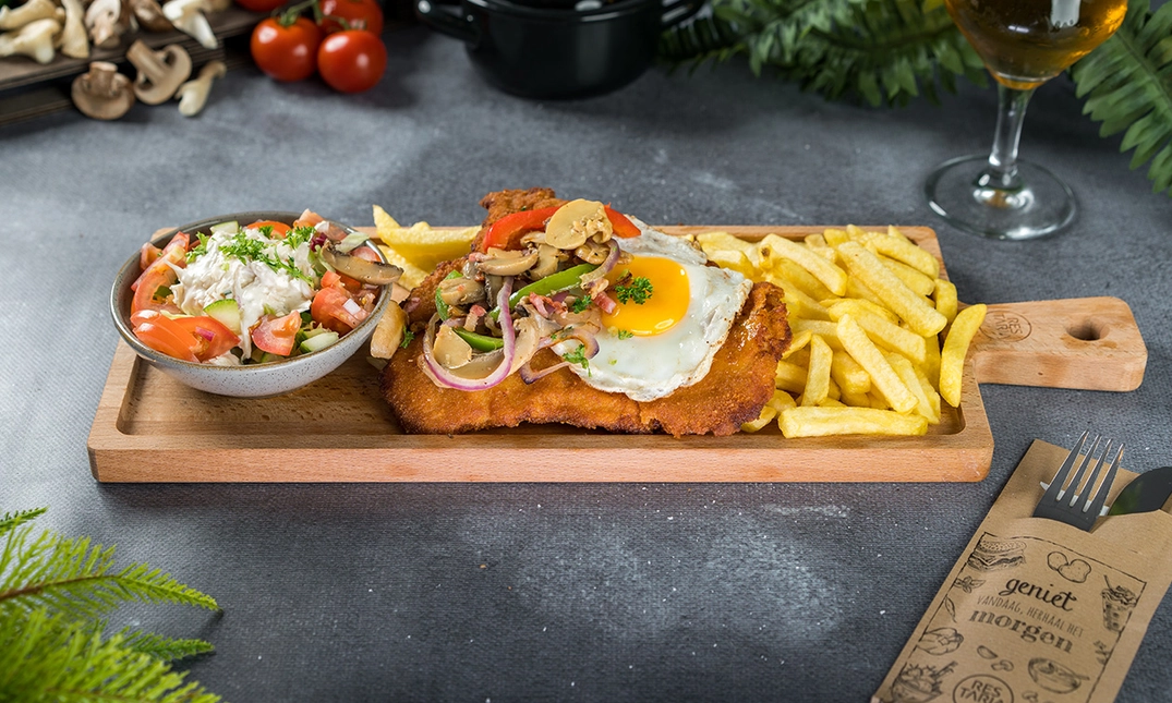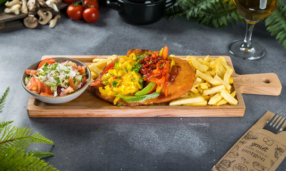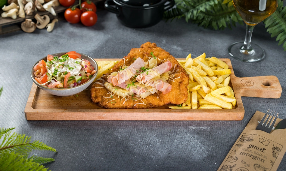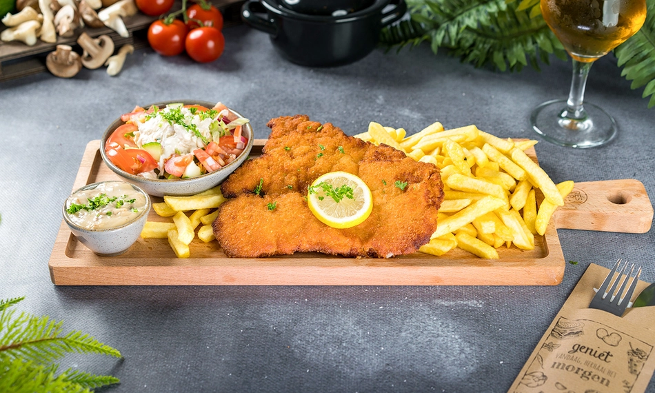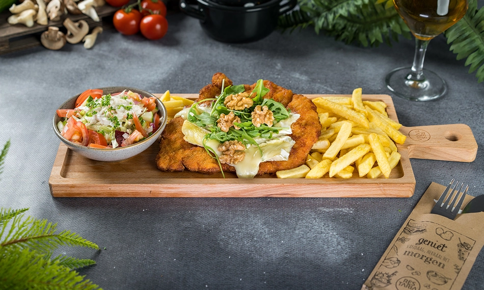 Geniet van een heerlijk 3-gangendiner bij Hof van Brabant: smul bij het hoofdgerecht van een verrukkelijke loaded schnitzel naar keuze