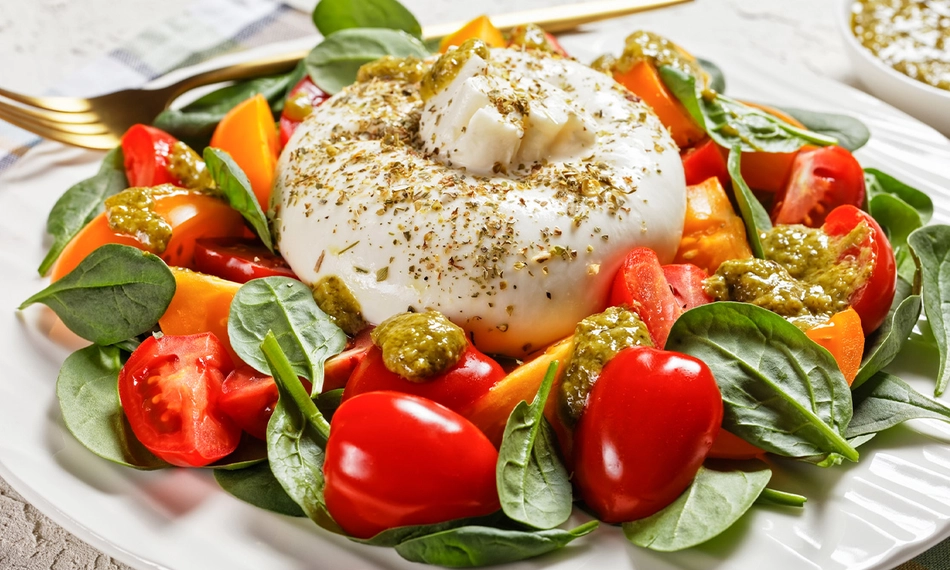 • Burrata met pesto, tomaat en parmaham (+ €2)