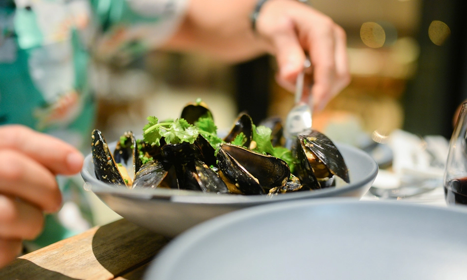 • Geniet van verrukkelijke verse mosselen met saus naar keuze