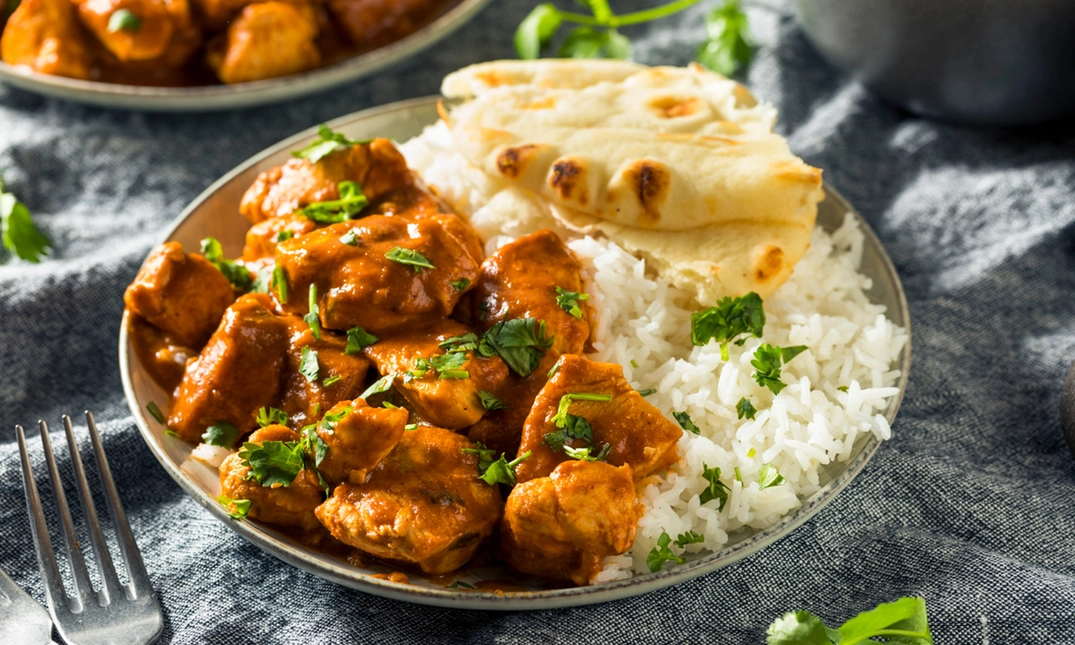 gemarineerde stukjes kipfilet in een romige saus van boter en Indiase kruiden - Chicken Tikka Tandoori