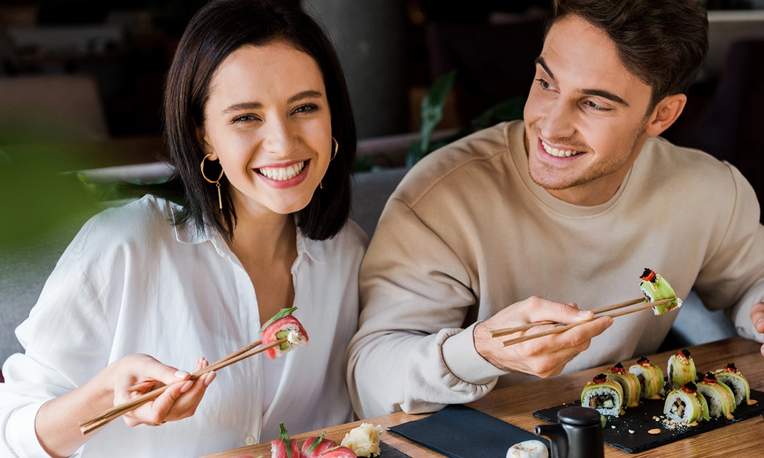 • Proef verse sushi, smaakvolle warme gerechten en lekkernijen van de grill