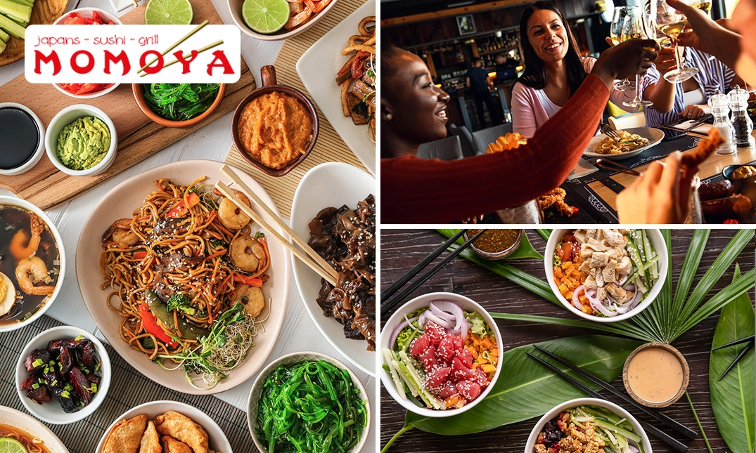 Geniet van een authentiek Japans 5-gangendiner bij Momoya: onder andere met dagverse soep, sushi, pokébowl, gyoza, black pepper beef, een uitgebreid dessert en meer