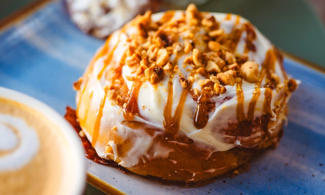 Geniet van een warme drank en zoete proeverij bij MultiVlaai Kampen: proef de heerlijke cinnabon, een puntje vlaai en meer onder het genot van een kop koffie of thee