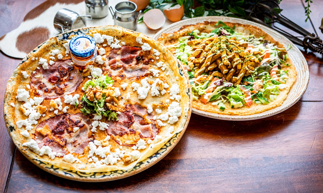 geitenkaas, spek, walnoten en honing - Shoarma pannenkoek