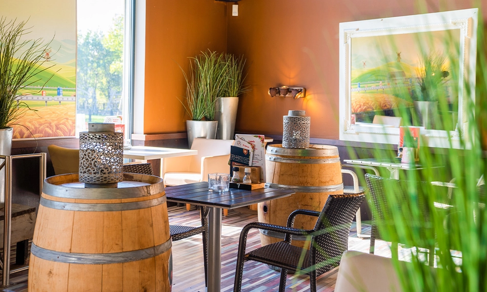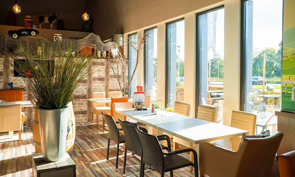 Het gezellige restaurant is voorzien van een schitterend terras waar jij bij goed weer lekker in het zonnetje kunt genieten. Het terras grenst aan een grote openbare speeltuin waar de kinderen kunnen spelen, terwijl de volwassenen vanaf het terras goed het overzicht kunnen houden. Ook binnen vind je een kinderhoek waar de kids naar hartenlust kunnen spelen. Ga gezellig uit eten met het hele gezin, familie of vrienden.