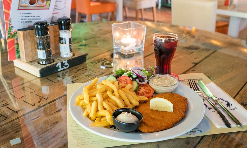 Bij PannenkoekenParadijs Tilburg kan je terecht voor pannenkoeken, maar wist je ook dat ze genoeg andere heerlijke gerechten hebben? Kom langs en schuif gezellig aan voor een 3-gangen keuzediner. Jij geniet vooraf van verse soep en vervolgens van een heerlijke pannenkoek met 1 basistopping en 2 luxe toppings naar keuze. Liever een snelle hap? Kies dan voor een hoofdgerecht geserveerd met verse frietjes en salade. Liever in de middag genieten? Ga dan voor de 2-gangen keuzelunch met voorafgaand een huisgemaakte soep en bij het hoofdgerecht een broodje naar keuze. Eet smakelijk!