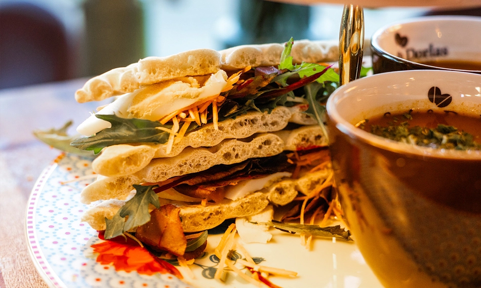 Bij Puur Toeval wordt bijkletsen pas echt een feestje met een luxe high tea gedurende 2,5 uur! Proost samen met een sprankelend glas cava, terwijl je wordt verwend met onbeperkt thee en een overheerlijke selectie van zoete en hartige lekkernijen. Wat dacht je van tonijnsalade, soep van de dag, macarons en scones met clotted cream en huisgemaakte jam? Dat wordt samen genieten!