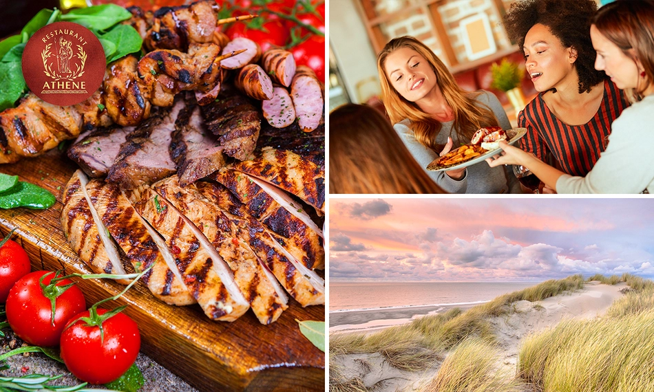 Waan je voor een avond in het prachtige Griekenland met een 3-gangen keuzediner of -lunch bij Restaurant Athena. Neem plaats in dit gezellige restaurant aan de kust in Oostende en laat je verrassen door de veelzijdige Griekse smaken. Het gastvrije personeel zorgt dat het jou aan niets ontbreekt. Smakelijk eten!
