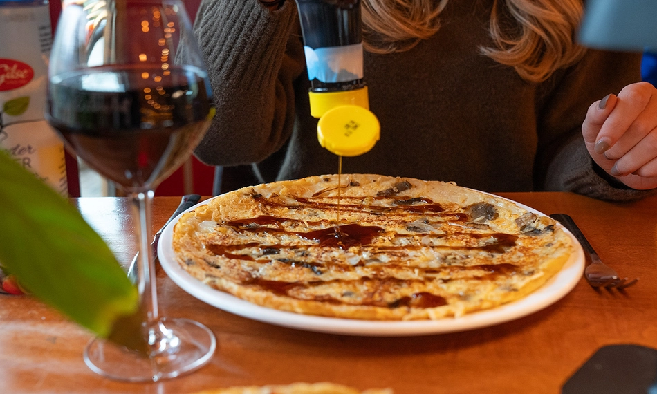Heerlijk smullen met een 3-gangen pannenkoekendiner bij Restaurant De Ossenstal in het prachtige bosgebied van Epe: stel bij het hoofdgerecht je eigen pannenkoek samen met tot wel 3 toppings