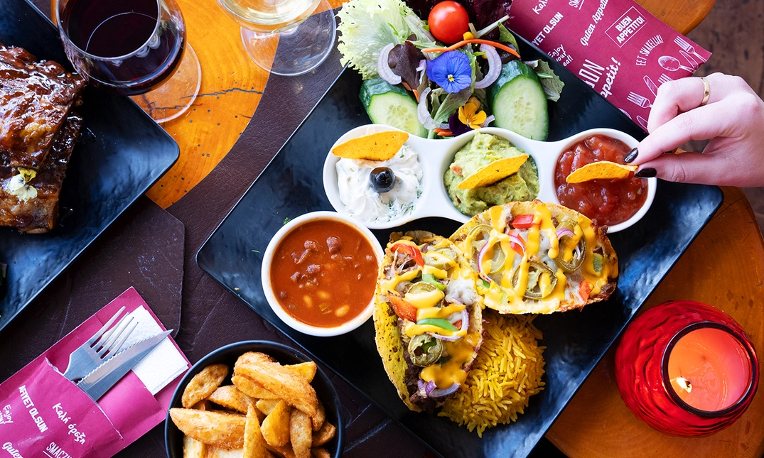 Heb jij zin in lekker eten? Kom dan eens naar Restaurant Guadalupe in Amsterdam! Hier geniet je van een heerlijk 3-gangen keuzediner. Smul bijvoorbeeld van een Griekse salade als voorgerecht, de spareribs als hoofdgerecht en sluit de avond af met een smakelijke tiramisu. Als kers op de taart krijg je er nog een lekkere portie nacho's met salsa bij. Nodig snel je favoriete gezelschap uit en kom een avond heerlijk genieten. Wij wensen je alvast smakelijk eten!