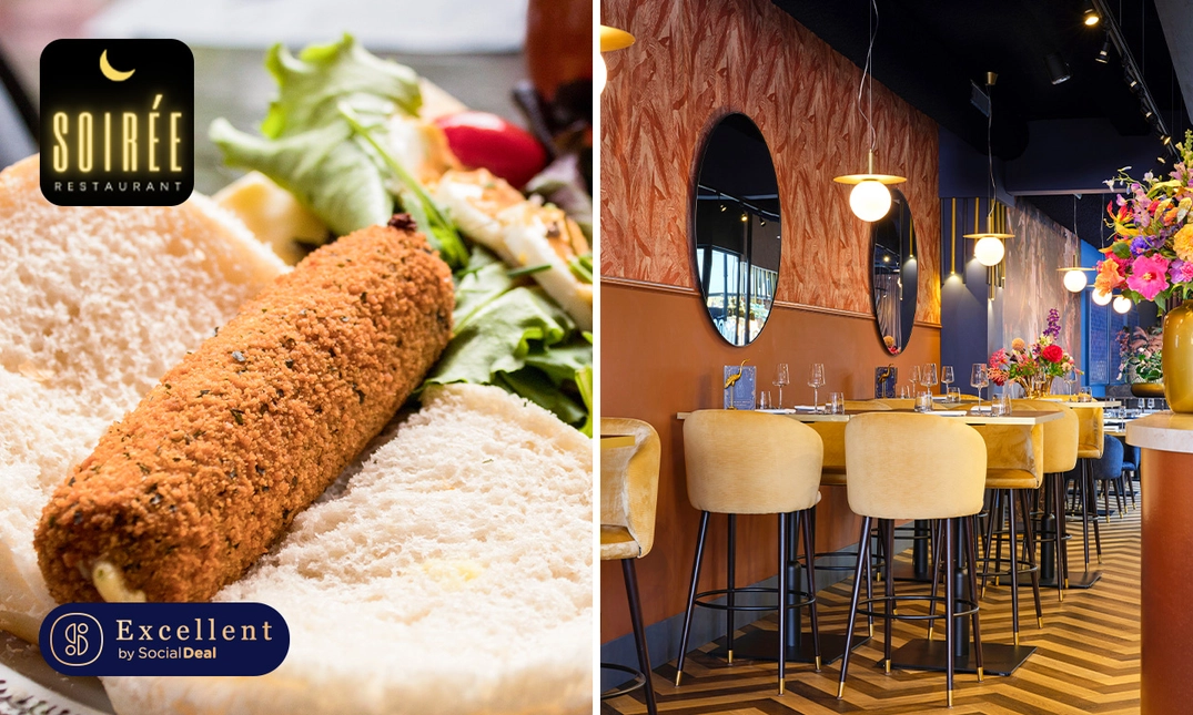 Geniet van een overheerlijk 12-uurtje bij Restaurant Soirée: smul onder andere van een rundvleeskroket met vloerbrood of ga voor de vegetarische variant met oesterzwamkroket