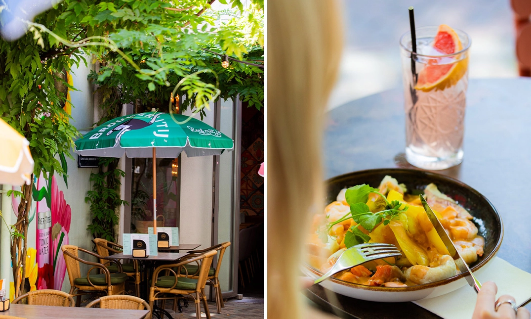 Het kleurrijke karakter zie je overal terug; van de tegeltjes aan de wand tot aan de speelse Perfect Serves. Of neem plaats in de prachtige verborgen binnentuin en ontsnap uit de dagelijkse drukte. Je voelt je gelijk op je gemak! Onder het restaurant bevindt zich een karakteristieke werfkelder, dé perfecte locatie voor een besloten feest of event. Kom gezellig langs met vrienden of familie en combineer het met een dagje shoppen. Dit wordt een onvergetelijke citytrip!
