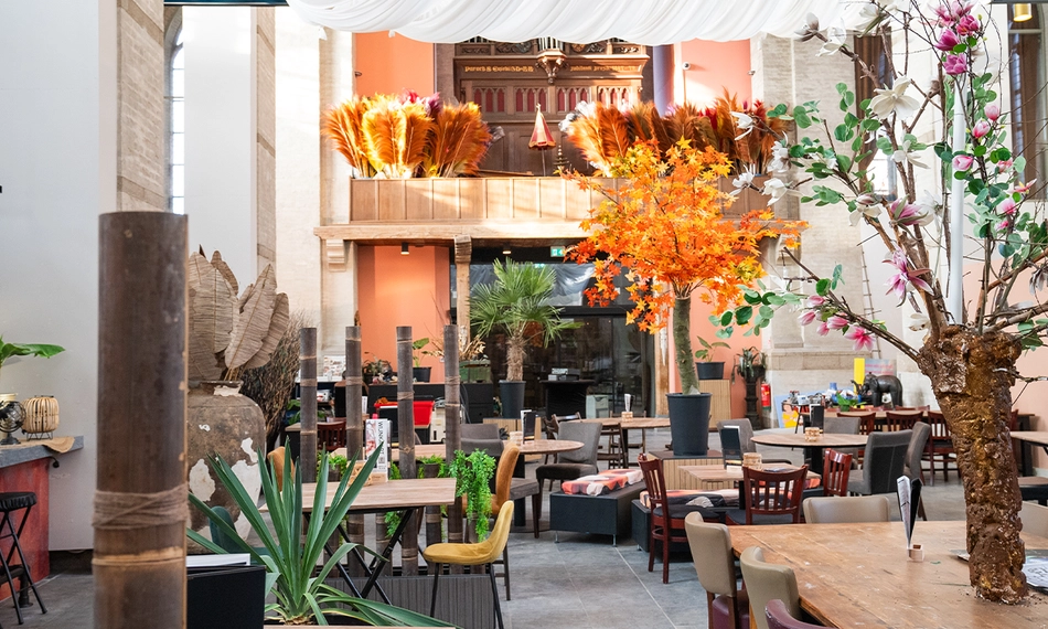 Maak kennis met Sama Sama Eten. Drinken. Ontmoeten in het centrum van Arnhem. Bij dit sfeervolle restaurant in de Sint-Walburgiskerk, de oudste nog bestaande kerk van Arnhem, ben je van harte welkom om te genieten van heerlijke gerechten. Ontdek verrukkelijke smaken uit de authentieke Indonesische en Aziatische keuken. Er wordt gewerkt met verse kruiden en producten. Ontdek deze ware smaakbeleving!