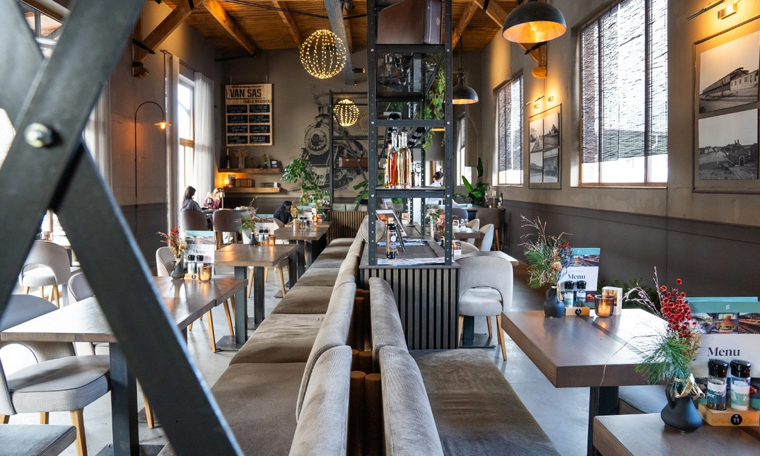 Het pand kenmerkt zich door hoge raampartijen, een robuust houten balken plafond en een industriële betonvloer, waardoor het licht en ruim aanvoelt. De moderne en comfortabele inrichting zorgt ervoor dat je extra geniet van alles wat Spoorhuis Baarle te bieden heeft. Of je nu binnen of buiten op het perronterras zit, je beleeft altijd een bijzondere ervaring. Bezoek Spoorhuis Baarle en ontdek deze bijzondere plek aan de grens.