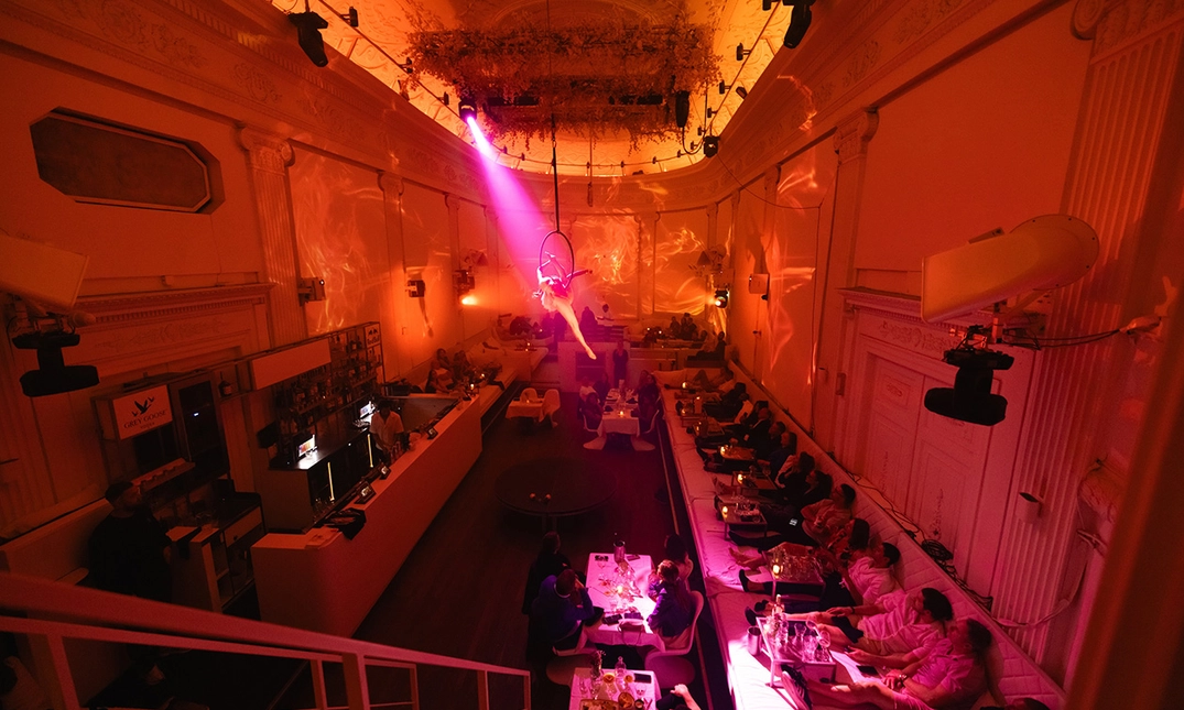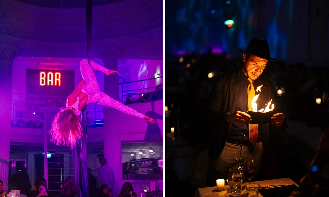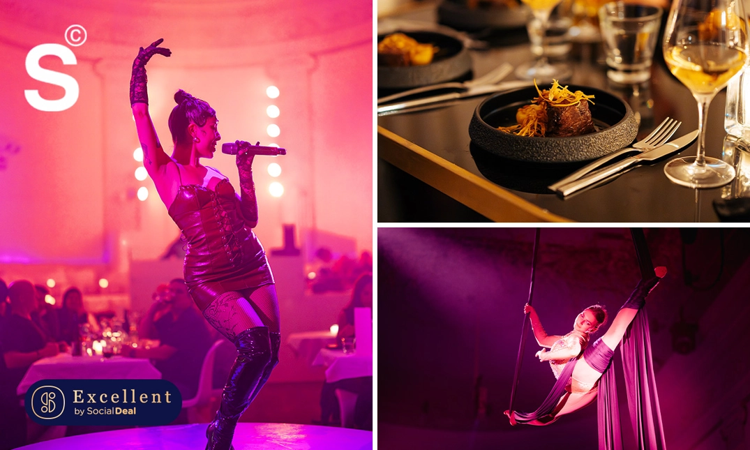 Je hebt keuze uit tickets voor Balcony (op het balkon) of op de Ground Floor (midden in het restaurant). Terwijl je je ogen uitkijkt, bereidt het team van ervaren chef-koks een heerlijk geïnspireerd 4- of 6-gangendiner dat tijdens de show voor jou op tafel wordt gezet. Geniet van de show en het diner tijdens de Midnight Masquerade!