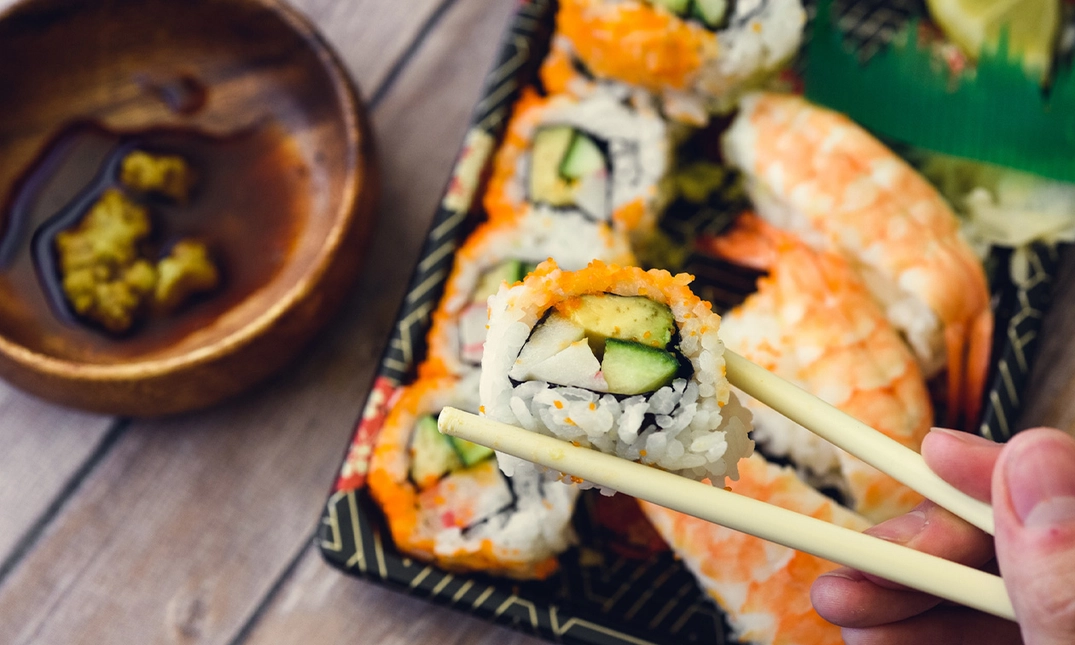 Inclusief sojasaus, wasabi en stokjes