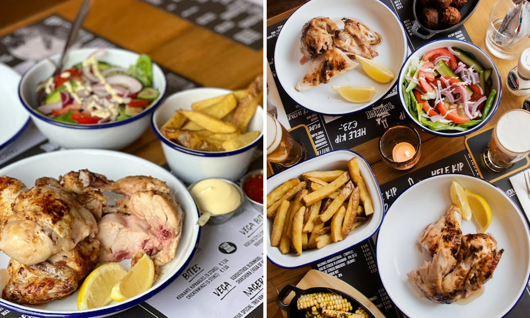Geniet van een heerlijke halve kip, kipschnitzel, kipburger of kipsaté bij ''t Kippegie: inclusief knapperige friet en frisse koolsalade