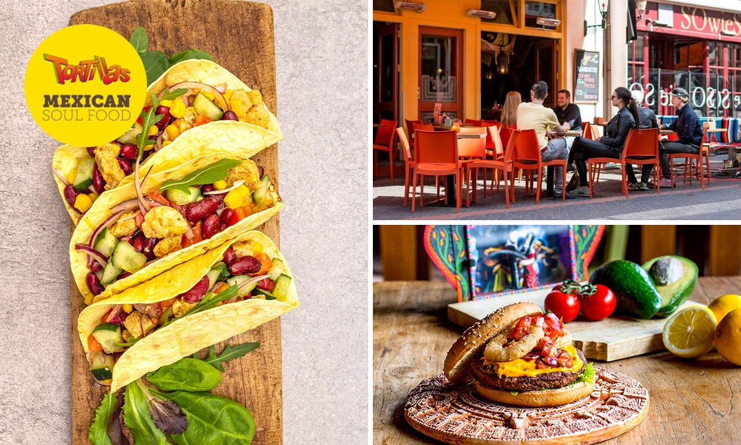 Heerlijk Mexicaans 4-gangen taco- of burgerdiner bij Tortillas: inclusief bijgerecht en frozen cocktail
